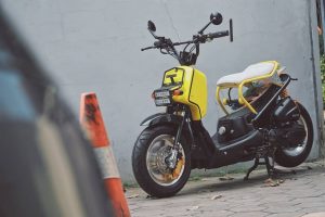 “Sasis dari tengah ke belakang kita rubah total, namun untuk sasis dari tengah ke depan masih orisinil. Engine mounting masih kita pake aslinya, shockbreaker depan dan belakang kita ganti pake produk Scarlet Racing. Kemudian lampu depan juga kita ganti LED yang biasa digunakan untuk mobil adventure yang bentuknya persegi panjang. Alasannya kita ingin tampil beda dari Honda Zoomer aslinya.”