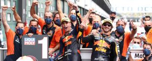 Red Bull KTM Ajo Moto2 menguasai dua podium teratas di Sirkuit Misano (19/09/2021) lewat Raul Fernandez (P1) dan Remy Gardner (P2). Meski tangan kanannya sakit, Fernandez mampu terus meningkatkan kecepatannya dan memimpin balapan hingga detik terakhir. Ia pun dianugerahi predikat Rookie of the Year di kelas Moto2.